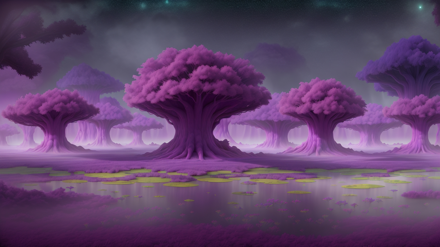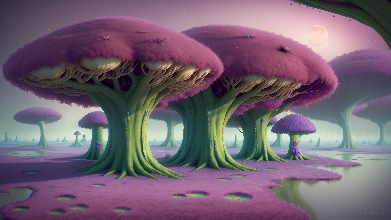 Серная почва способствует росту уникальных деревьев, которые адаптировались к таким условиям благодаря массивным стволам и кучной опушке. Множественные водоемы здесь имеют желтый цвет из-за особенностей химического состава воды, взаимодействующего с минералами в почве. Этот желтый оттенок создает контраст с пурпурными деревьями и вместе с вечным туманом, являющимся испарением серы, придает болоту загадочность и уникальность.