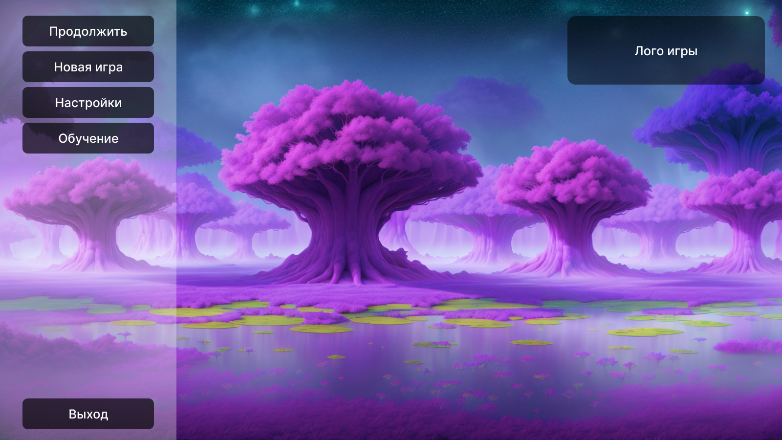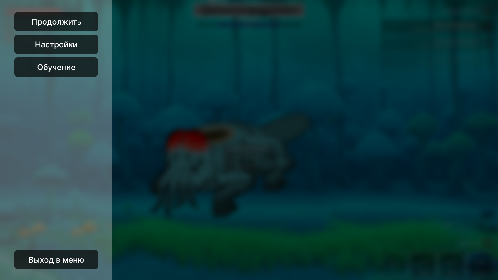 На фоне - пейзаж одного из биомов, последнего открытого игроком. Расположены кнопки: