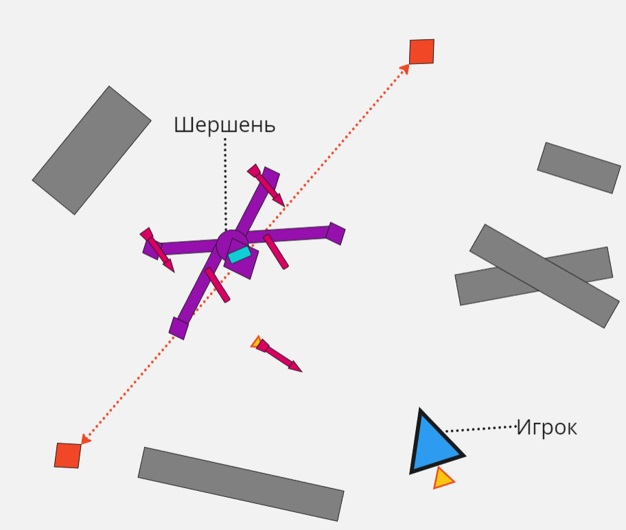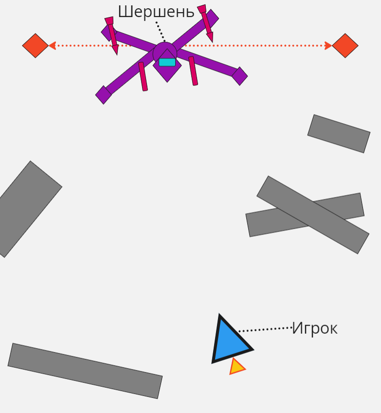 Налет: Шершень пролетает по диагонали снизу-вверх или сверху-вниз и выстреливает ракету.