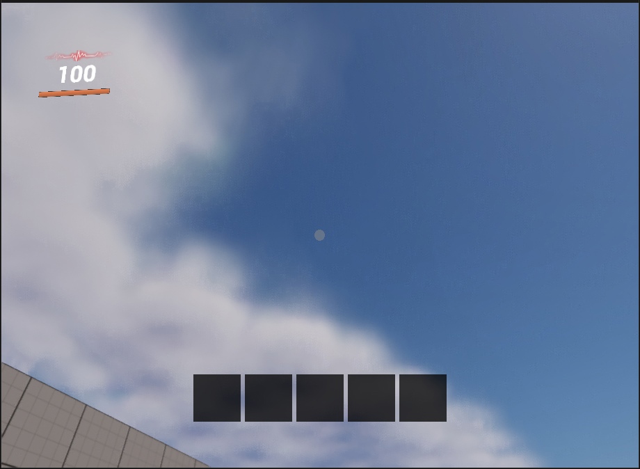В левом верхнем углу экрана отображается здоровье игрока и полоска выносливости, внизу экрана инвентарь из 5 слотов.