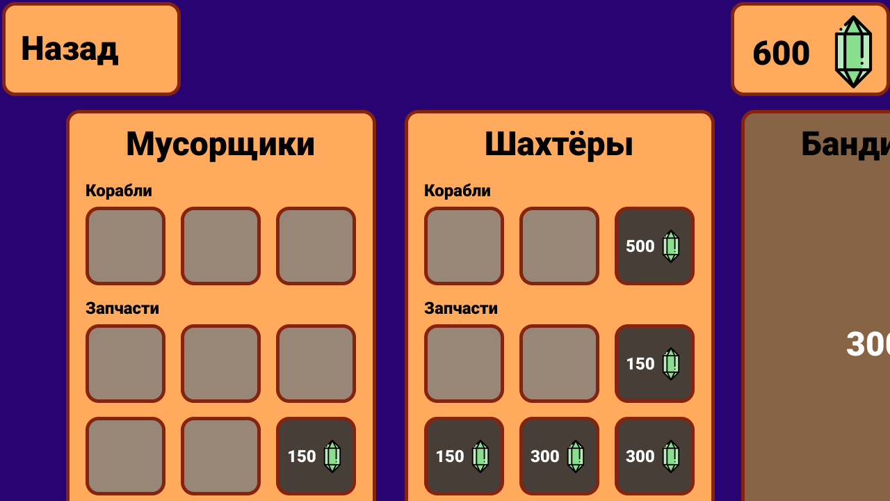 Игрок может кликать по слотам, чтобы вставить в них одну из доступных запчастей.