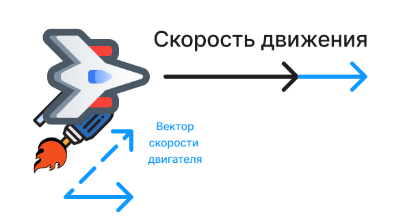 2. Вектор добавочной скорости проецируется на вектор движения корабля.