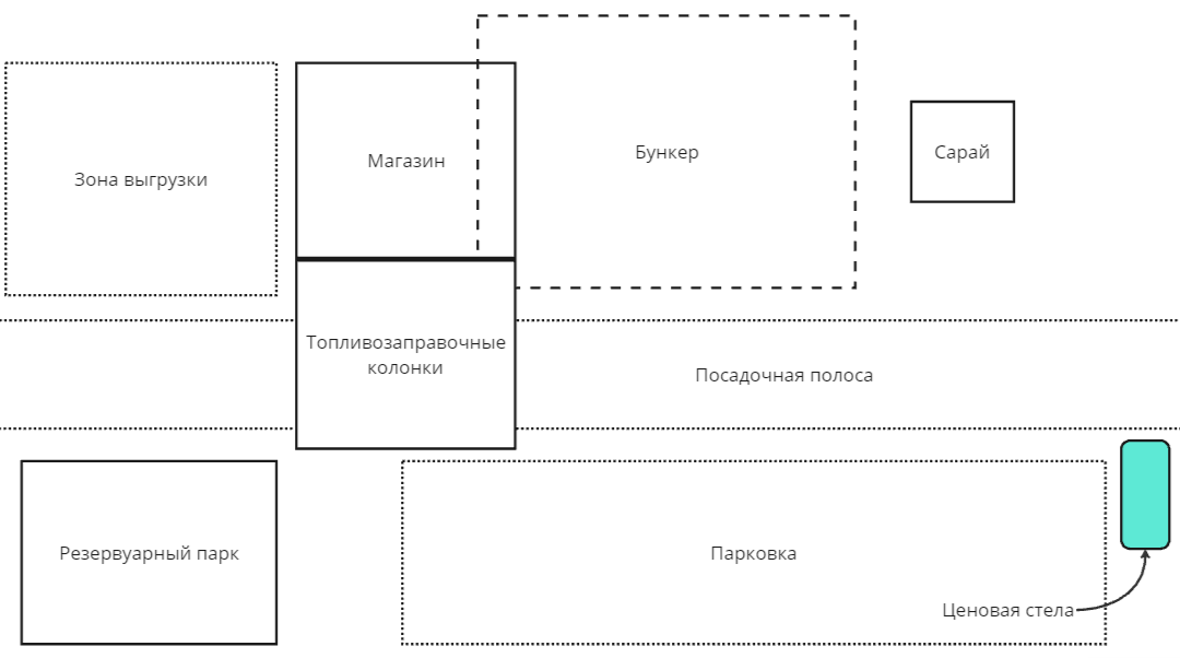 Ценовая стела - локация в форме стелы, в рамках которой можно начинать и заканчивать рабочую смену, а также в рамках которой отображаются актуальные цены за одну единицу топлива.