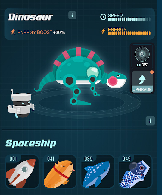 Айдлер на основе шагомера, где игрок коллекционирует уникальные планеты, покупает космолеты и отправляется в приключения в командах по 3-15 человек, где все скидываются шагами и игровыми ресурсами на прохождение препятствий.