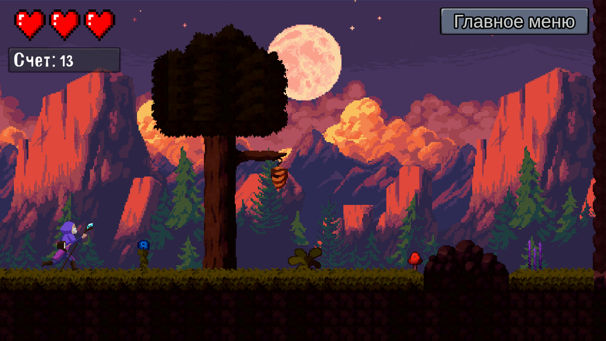 - После запуска игры надо подождать, пока маг достигнет препятствия или противника.