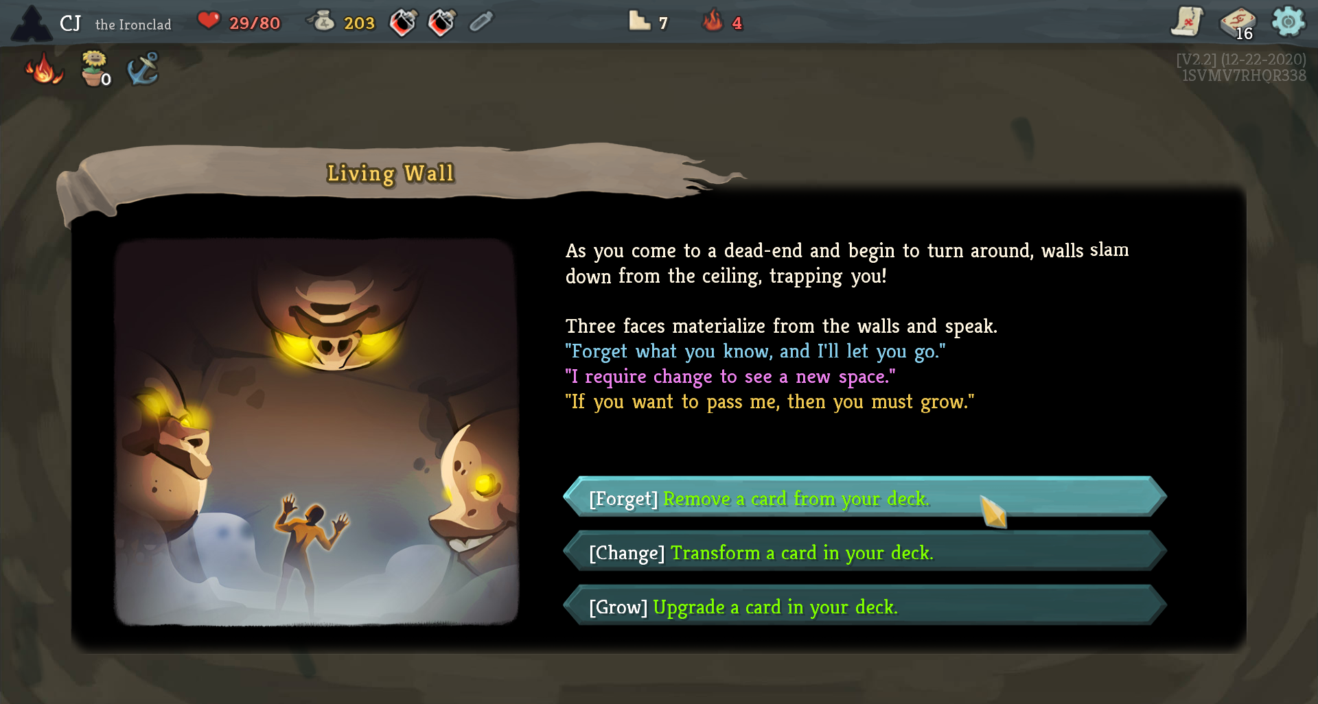 Игроку демонстрируется экран с нарративным описанием события и несколько вариантов ответов/действий.