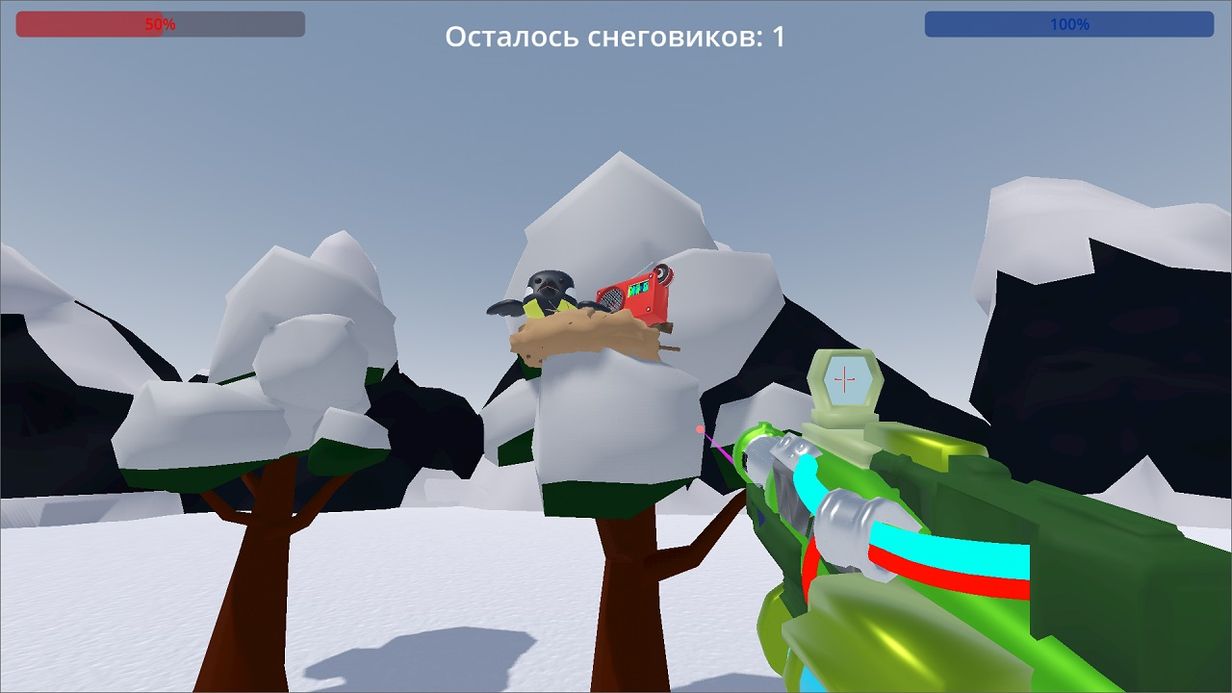 Погрузитесь в захватывающий снежный мир в игре "Зимний шутер", созданной при помощи команды детей, занимающихся 3D-моделированием.