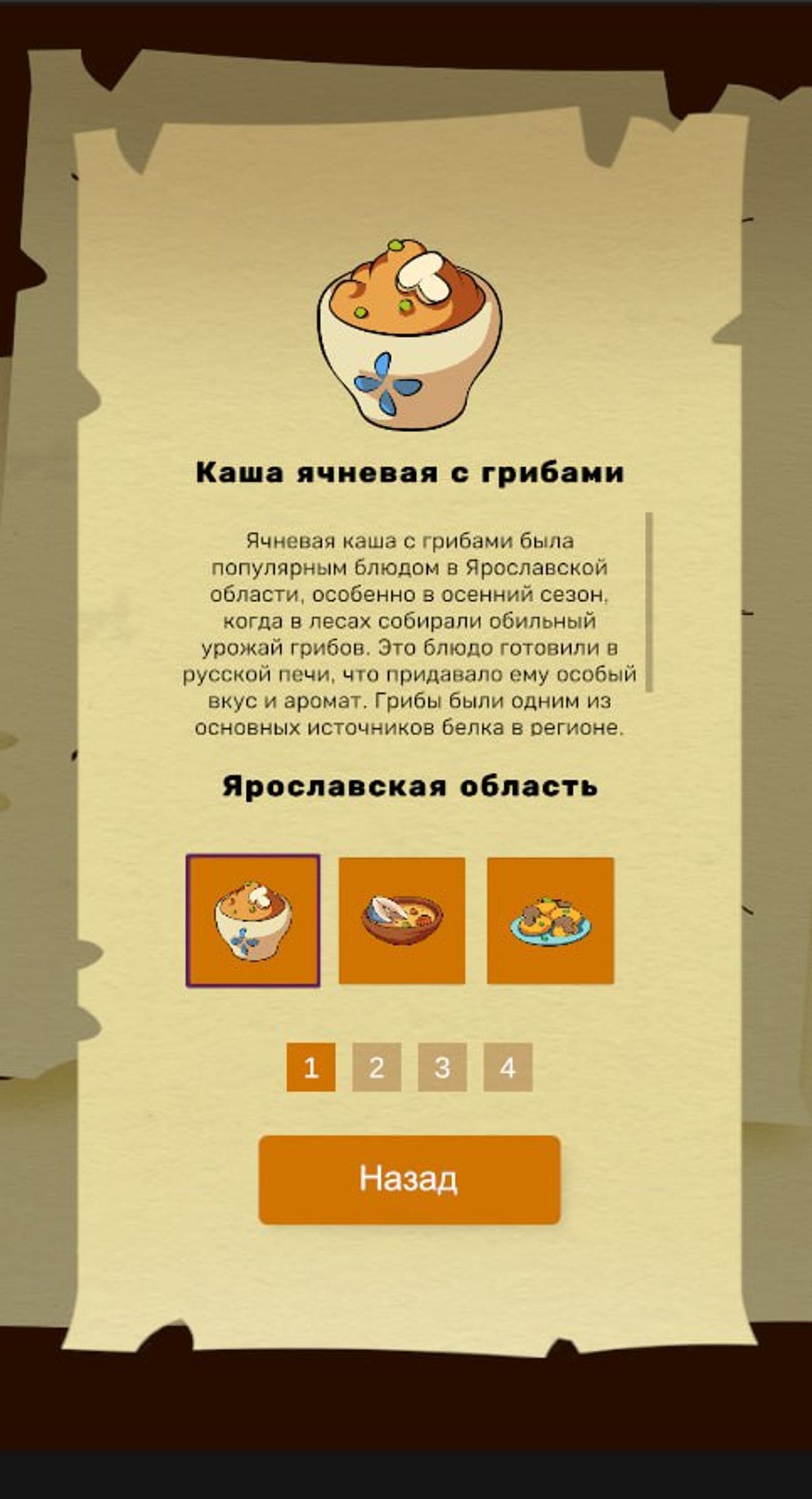 aboutGamePage.description: Кухня Бабы Яги - увлекательная 2D игра, в которой Баба Яга путешествует по различным регионам России, собирая ингредиенты и готовя традиционные блюда для знаменитых персонажей русских сказок. Главная цель игры – познакомить игроков с кулинарными традициями и культурой различных регионов через интерактивный игровой процесс.