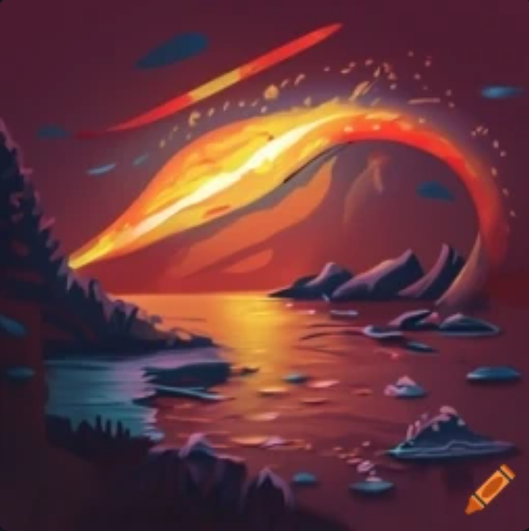Мир представляет собой метеорит, рядом с которым разбросаны маленькие его осколки.