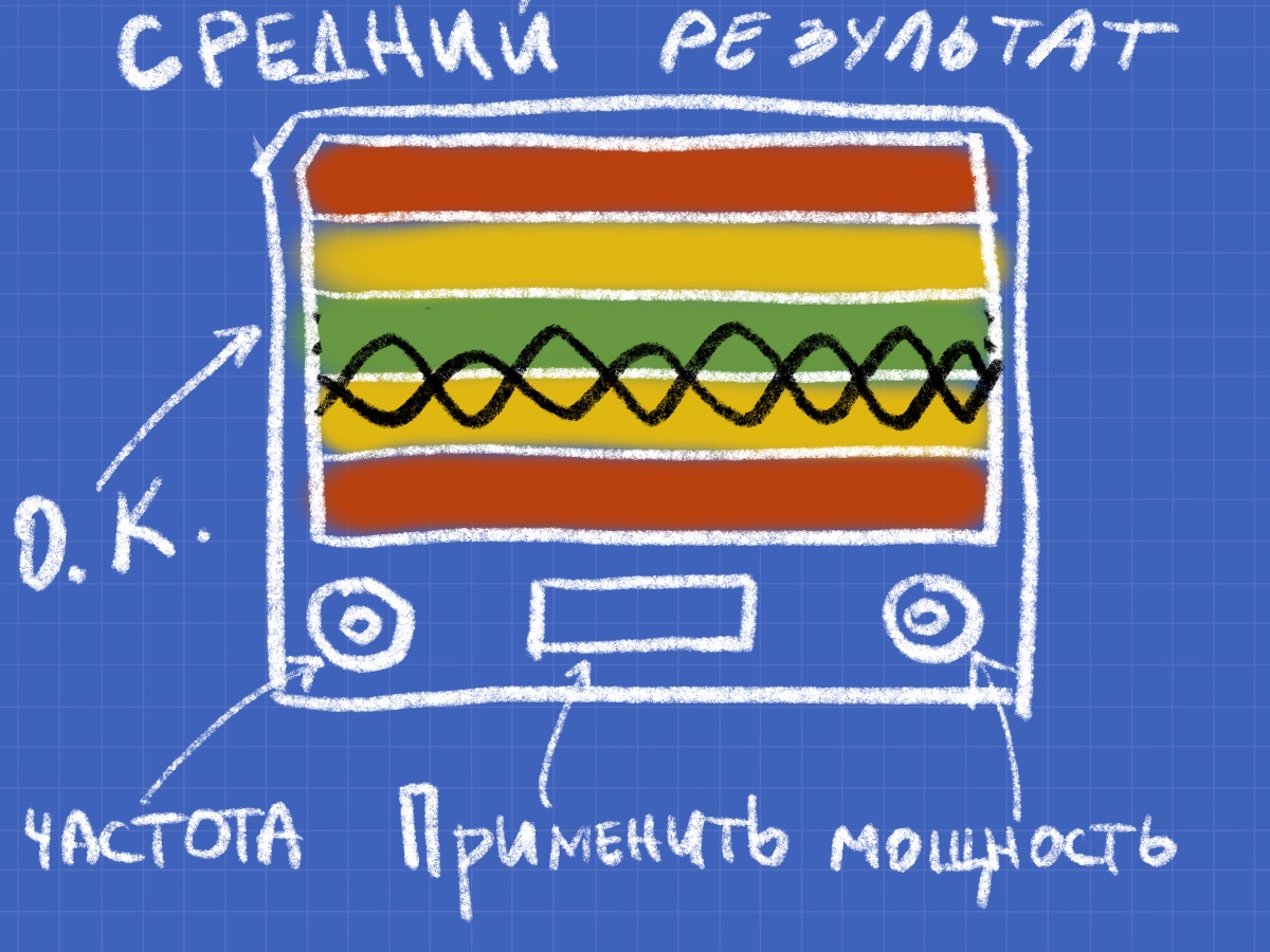 - Когда индикатор сигнала находится в оптимальной зоне по частоте и мощности, игрок нажимает кнопку "Применить".