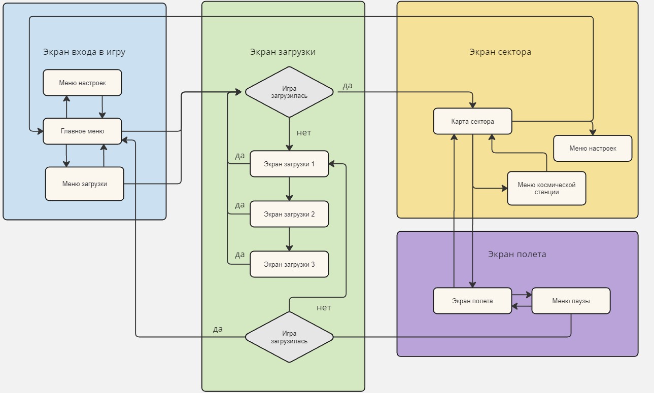 В данном экране происходит перелет корабля от одной станции к другой под управлением игрока.