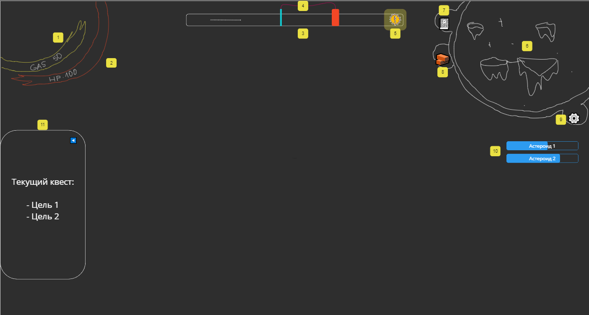 Все элементы UI выполняются в выбранном художественном стиле и цветовой палитре.