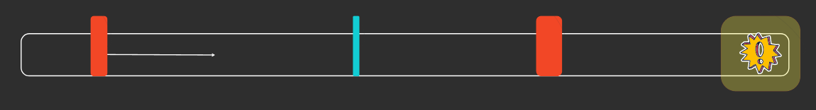 Время отображается в UI в виде панели, на которой движутся события слева направо, достигая окна текущего события.
