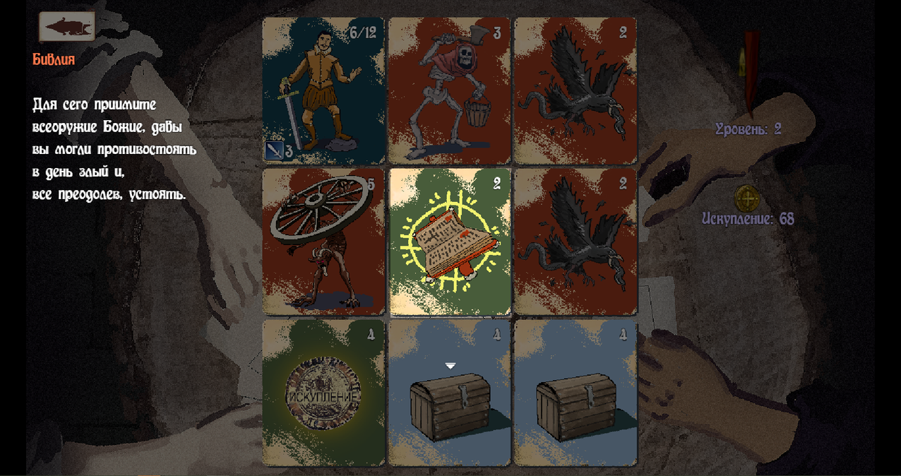 aboutGamePage.description: Искупление - это карточная игра, но с нестандартной концепцией. Вместо сбора колод и разыгрывания карт вы сами играете картой. Вам необходимо, играя за Гунтериха, доказать Архангелу Гавриилу, что протагонист достоин попасть в рай. Для этого сражайтесь с демонами и их повелителями, самым главным из которых является падший ангел Люцифер.