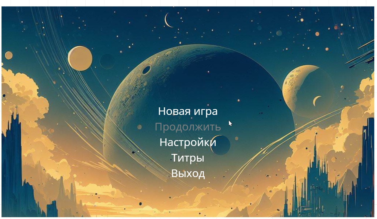 - Продолжить (скрыта при первом запуске) — запускает игру с места последнего сохранения