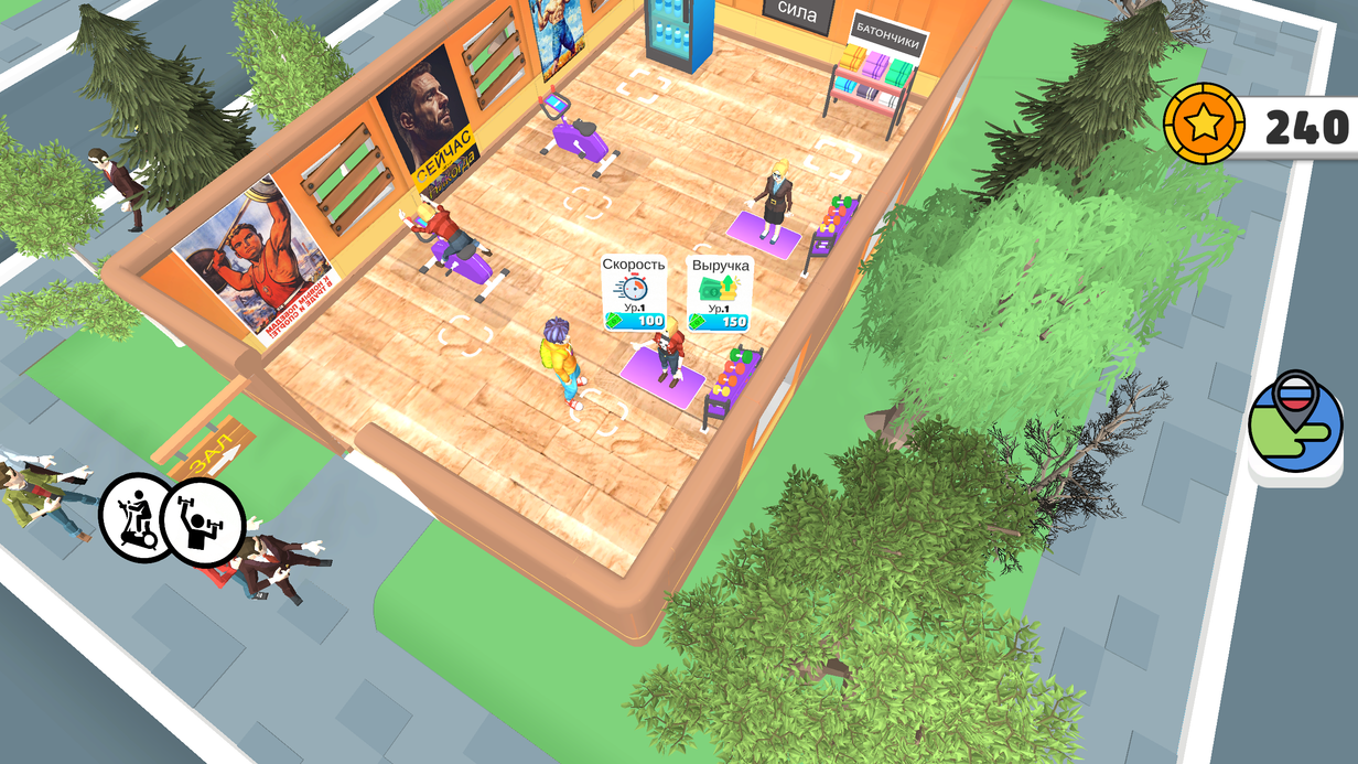 • Улучшай тренажеры: Используй собранные монеты для апгрейда тренажеров. Улучшенные тренажеры привлекут больше клиентов и увеличат твой доход.