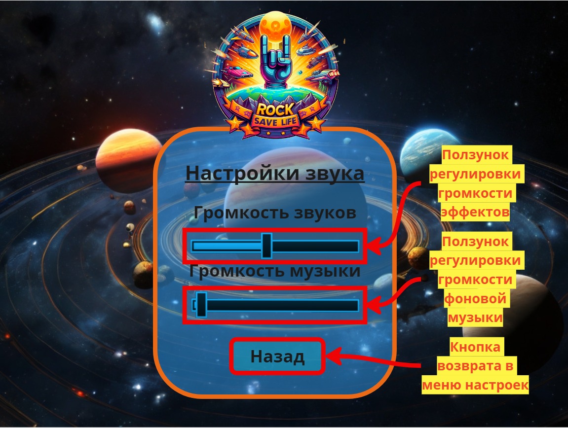 Настройки звука: Регулировка громкости эффектов, Регулировка громкости музыки