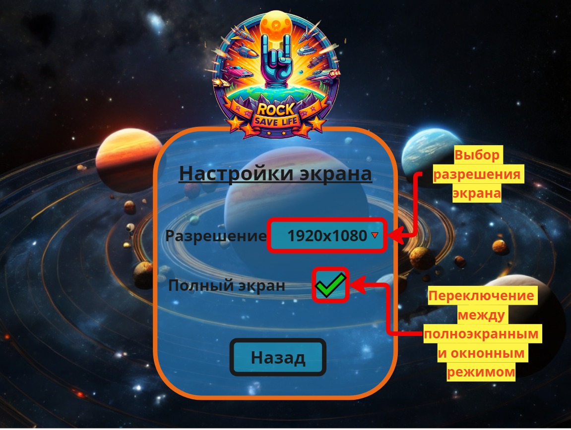 Настройки экрана: Выбор разрешения экрана, переключение между полноэкранным и оконным режимом