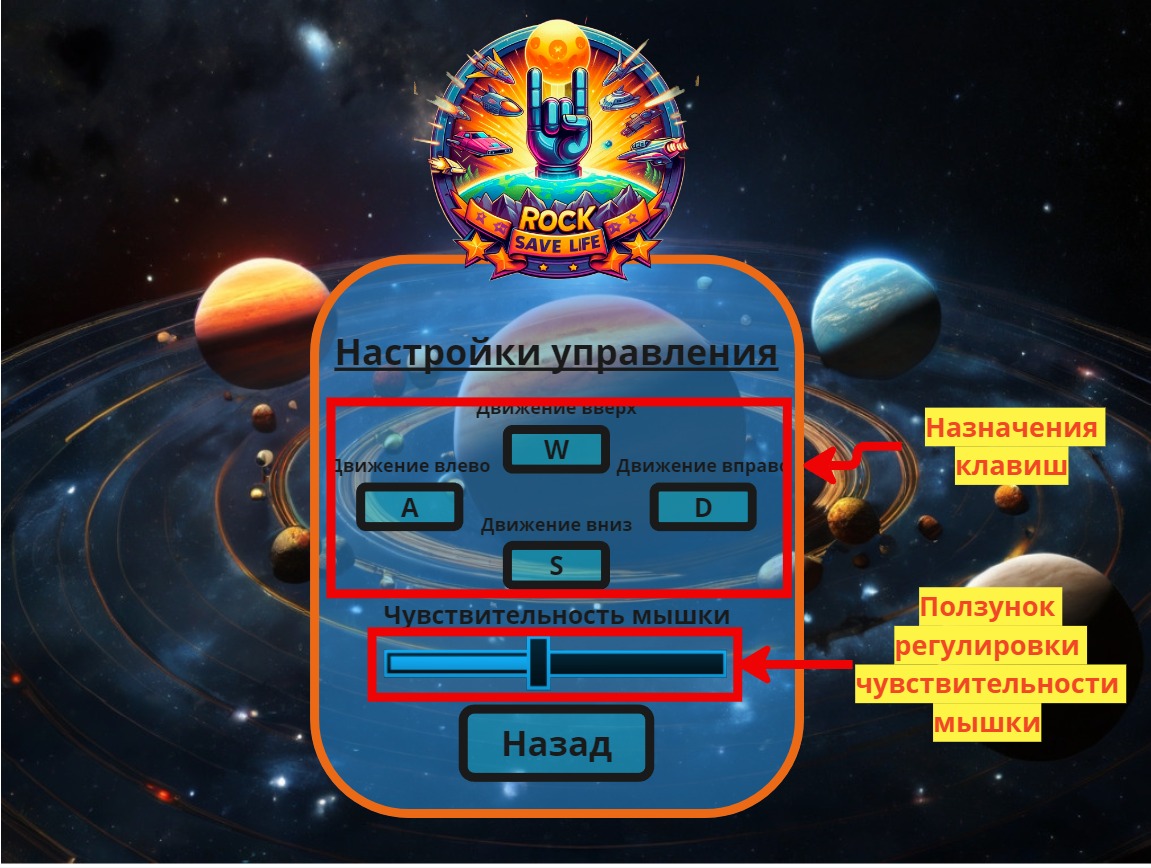 Настройки управления: Назначения клавиш движения, регулировка чувствительности мышки