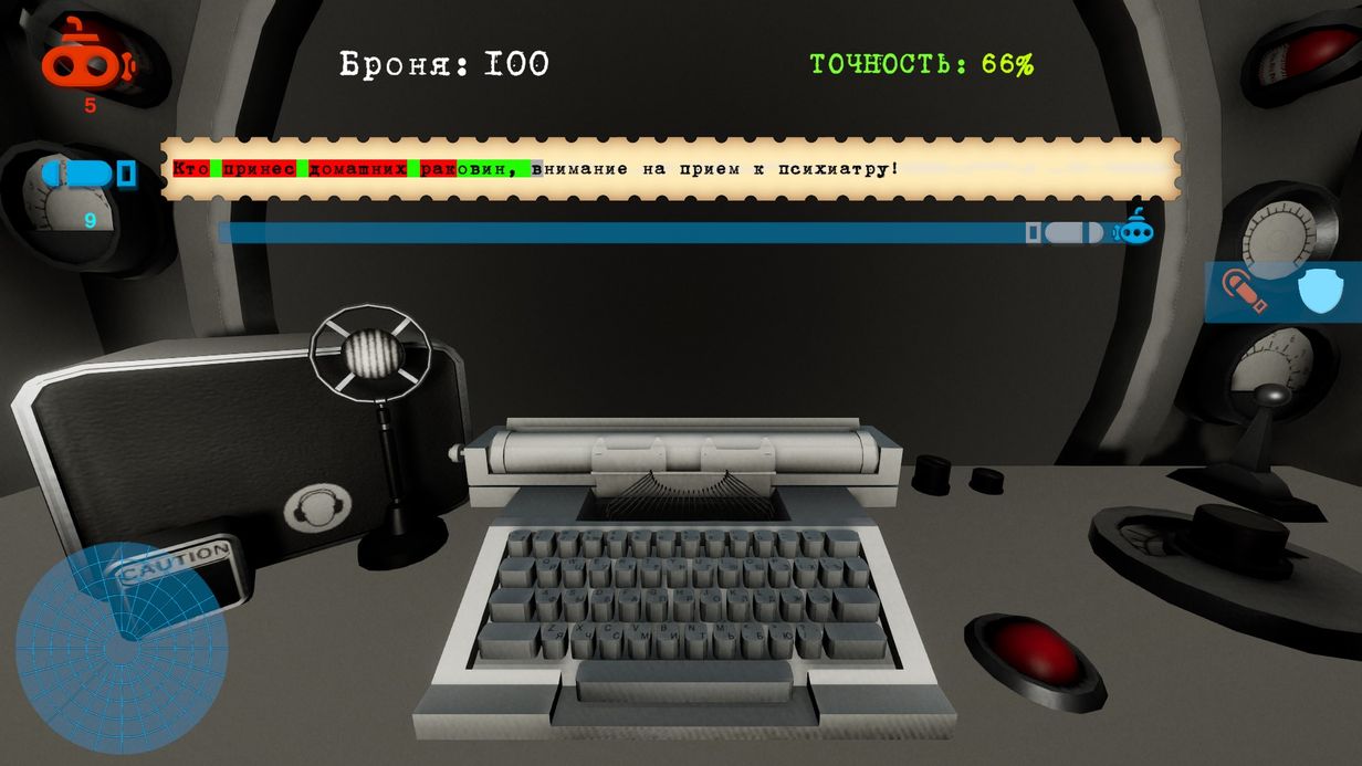 Игроку в лице связиста-радиста, используя метод “слепой” печати, предстоит быстро реагировать на боевую обстановку и координировать действия команды подводной лодки, используя зашифрованные сообщения, направленные на Атаку противника или на Маневр от вражеских атак. Успешность Атаки/Маневра зависит от точности и скорости передачи сообщений.