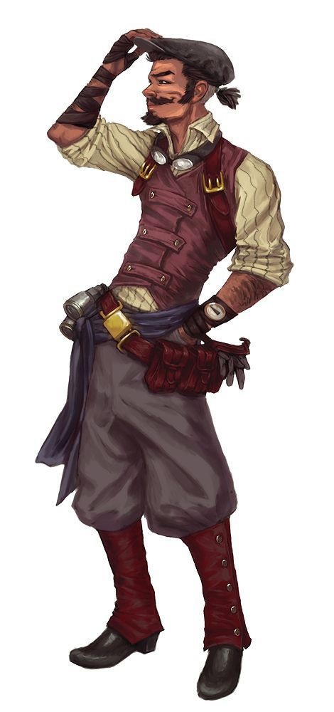 Одеты в лёгкую, рабочую одежду изобретателя бурого цвета. Трое мужчин и две девушки. На правой руке - силовая, механическая перчатка, в которой они держит двуручный молот по аналогии с "Молотом" из списка оружия для героев.