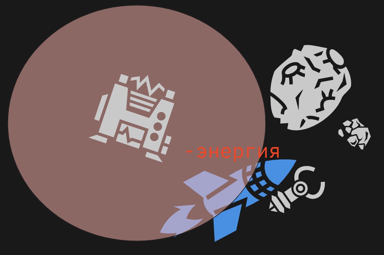- Выкачивает энергию Космолета с фиксированной скоростью;