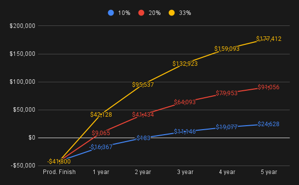 За основу в расчетах взята конверсия в 20% вишей в продажи в первый месяц, так как это медианное значение для "средне успешных" инди-проектов, полученное в исследованиях Fellow Traveller Games и The GameDiscoverCo.