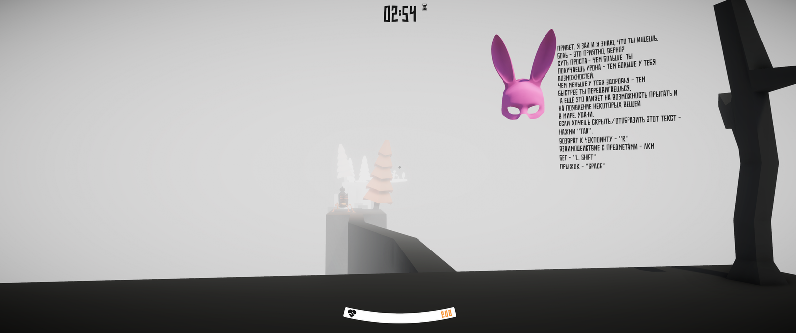 3D Платформер от 1-го лица, где наша задача - получать урон, чтобы пройти игру.
