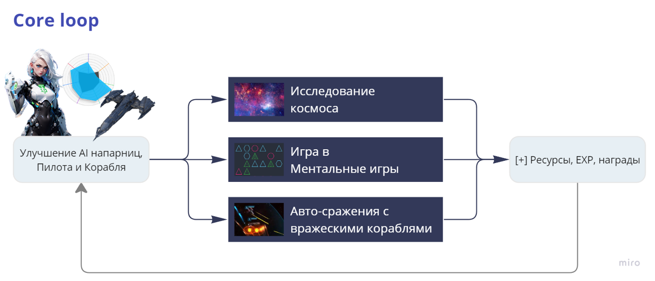 - Направления "Исследование космоса", "Ментальные игры" и "Сражения с кораблями" взаимовлияют друг на друга через Систему развития - Игрок может облегчать себе любое направление за счет прокачки другого.