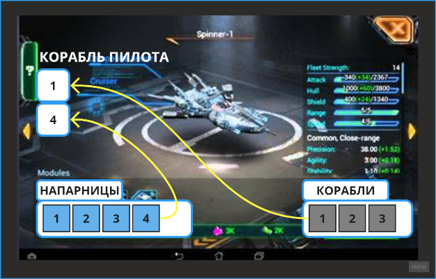 - Но к базовым параметрам кораблей прибавляется %-бонус от AI-напарниц и Пилота, усиливающие общую мощь Игрока. (см. Общую систему развития в ГЕЙМПЛЕЙ ). Поэтому в зависимости от целей Игрока имеет значение, какие корабли (с их распределением базовых параметров) добавлять себе во Флот.