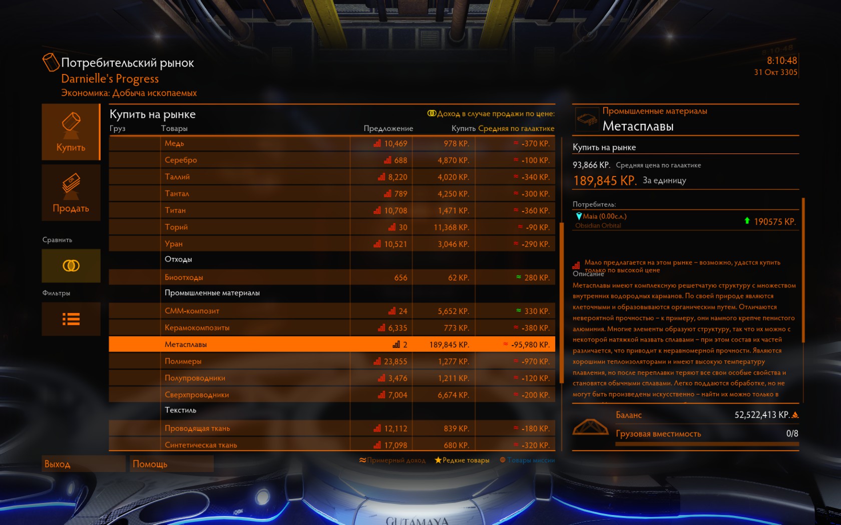 Цены и доступность рыночных товаров, отображаемых на экране покупки грузов, рассчитываются с помощью нескольких формул, которые берут базовую стоимость каждого товара, смешивают её с парой экономических переменных и добавляют немного случайного поведения. В результате получается основа торговой системы, где умелые торговцы могут заработать состояние (в то время как остальные не могут получить даже небольшой доход).