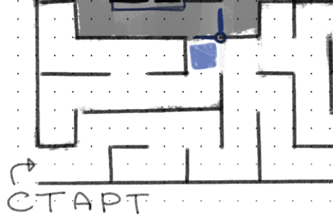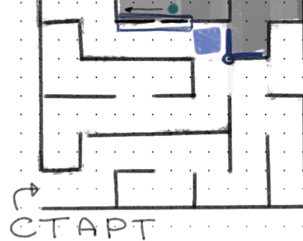 На рисунке через эту дверь может пройти только дрон, двигаясь только из правого коридора.