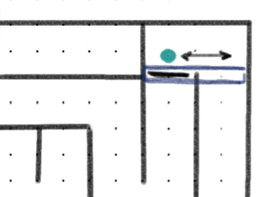Она состоит из траектории (синий прямоугольник на рисунке) и двигающейся вдоль неё "стены" с ручкой (чёрный и бирюзовый).