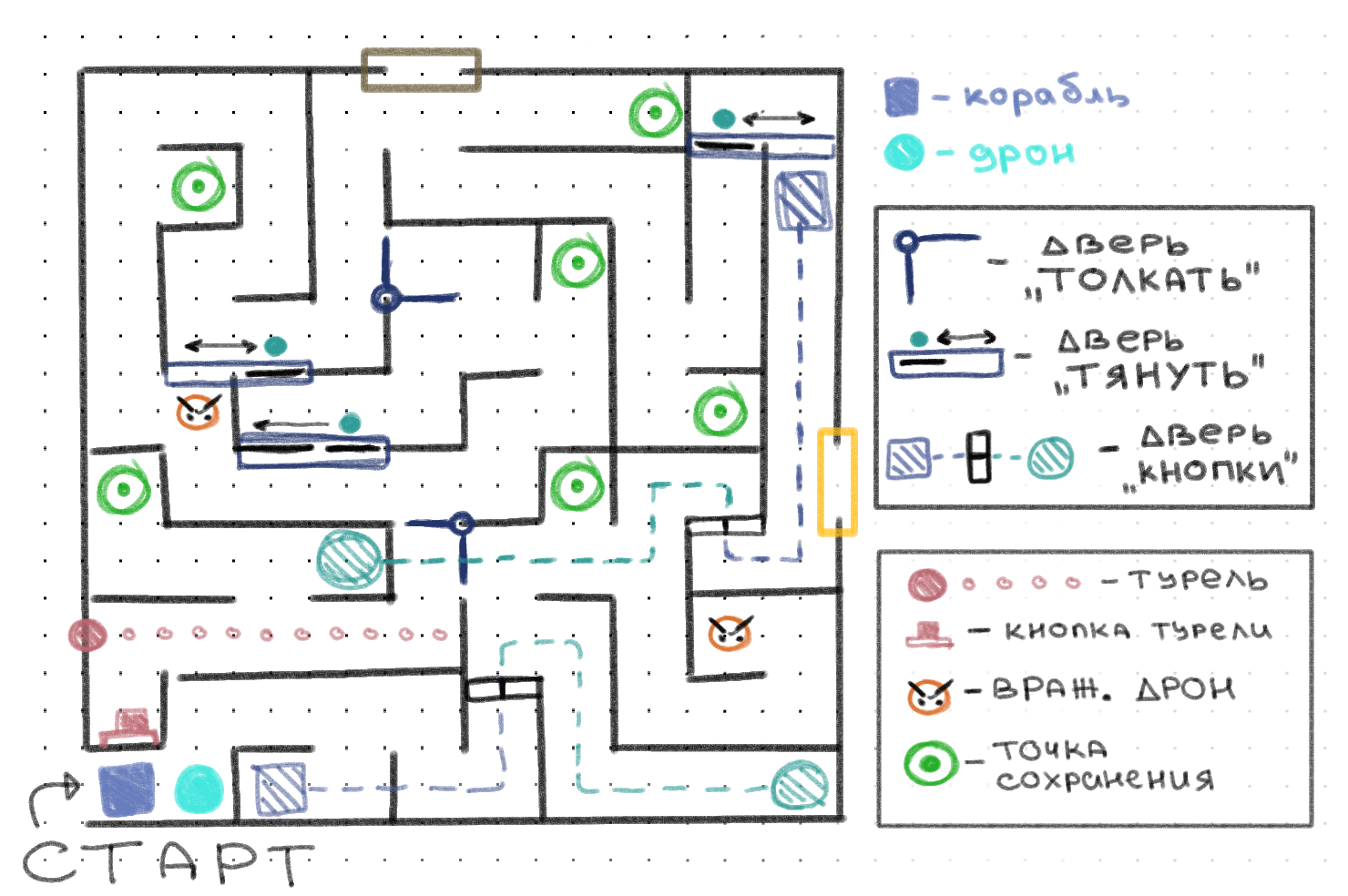 Геймплей описан в Пример уровня . Перед ознакомлением советую изучить то, как перемещается Корабль и Дрон, а также раздел Двери.
