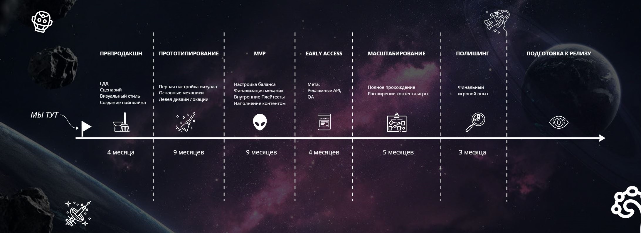 Дорожная карта проекта. Может изменяться и дополняться в течении разработки. Связано с разделом 13.4. P&L .