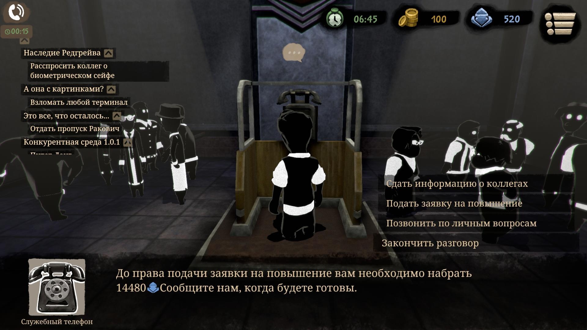 Игрок может взламывать и обыскивать кабинеты коллег, сообщать характеристики и нарушения и главное – взаимодействовать с персонажами. Всё это будет идти совместно с игровыми ситуациями и потому имеет достаточно большое многообразие вариаций прохождения. Совместно с этим игрок должен будет собрать как можно больше биометрических сейфов, необходимых для раскрытия подноготной истории и финалов игры.