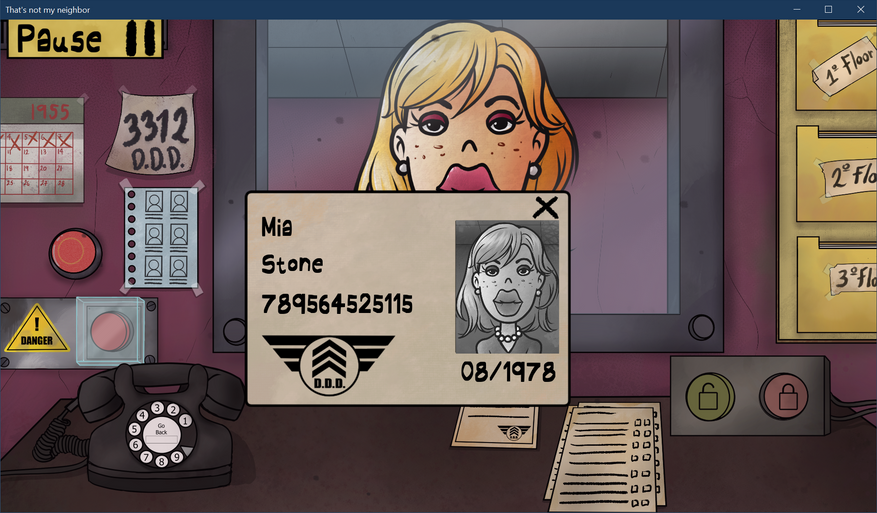 На дворе 1955 год, и по неизвестным причинам двойники встречаются чаще, чем обычно, поэтому Отдел по обнаружению двойников (D.D.D.) принял меры по этому поводу. Ваша задача будет заключаться в том, чтобы разрешить или запретить вход субъектам, которые просят войти в здание.