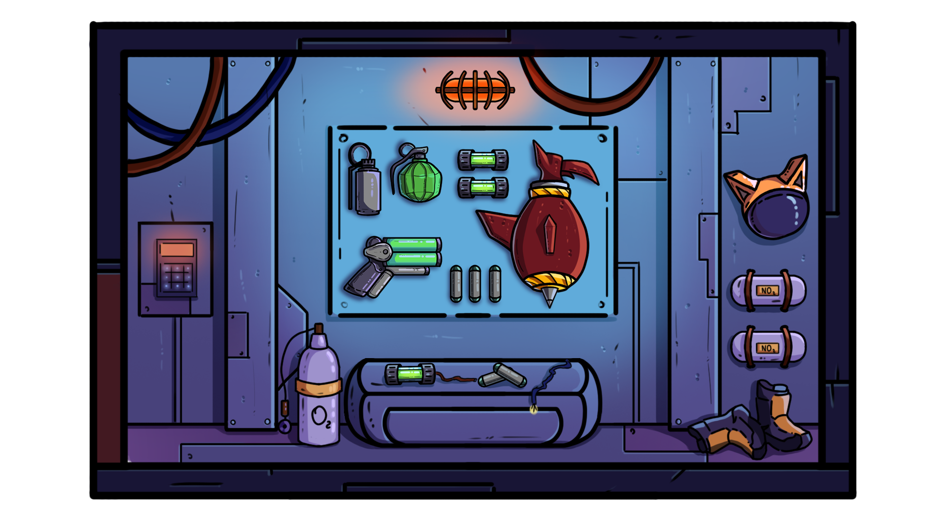 1. Капитан имеет бластер, пули которого летят по прямой с большим интервалом и наносят средний урон.
