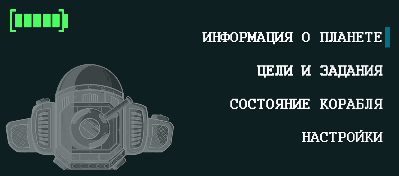 Экран меню на космическом корабле