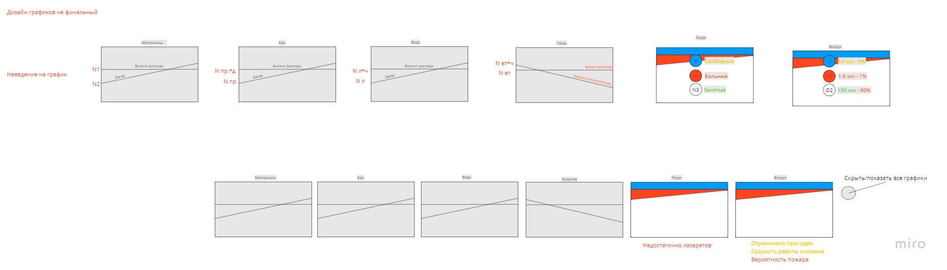 Ресурсы показаны графиками в верхней части экрана. Графики можно скрыть отдельной кнопкой. При наведении на график показывается дополнительная информация Особые предупреждения показаны постоянно.