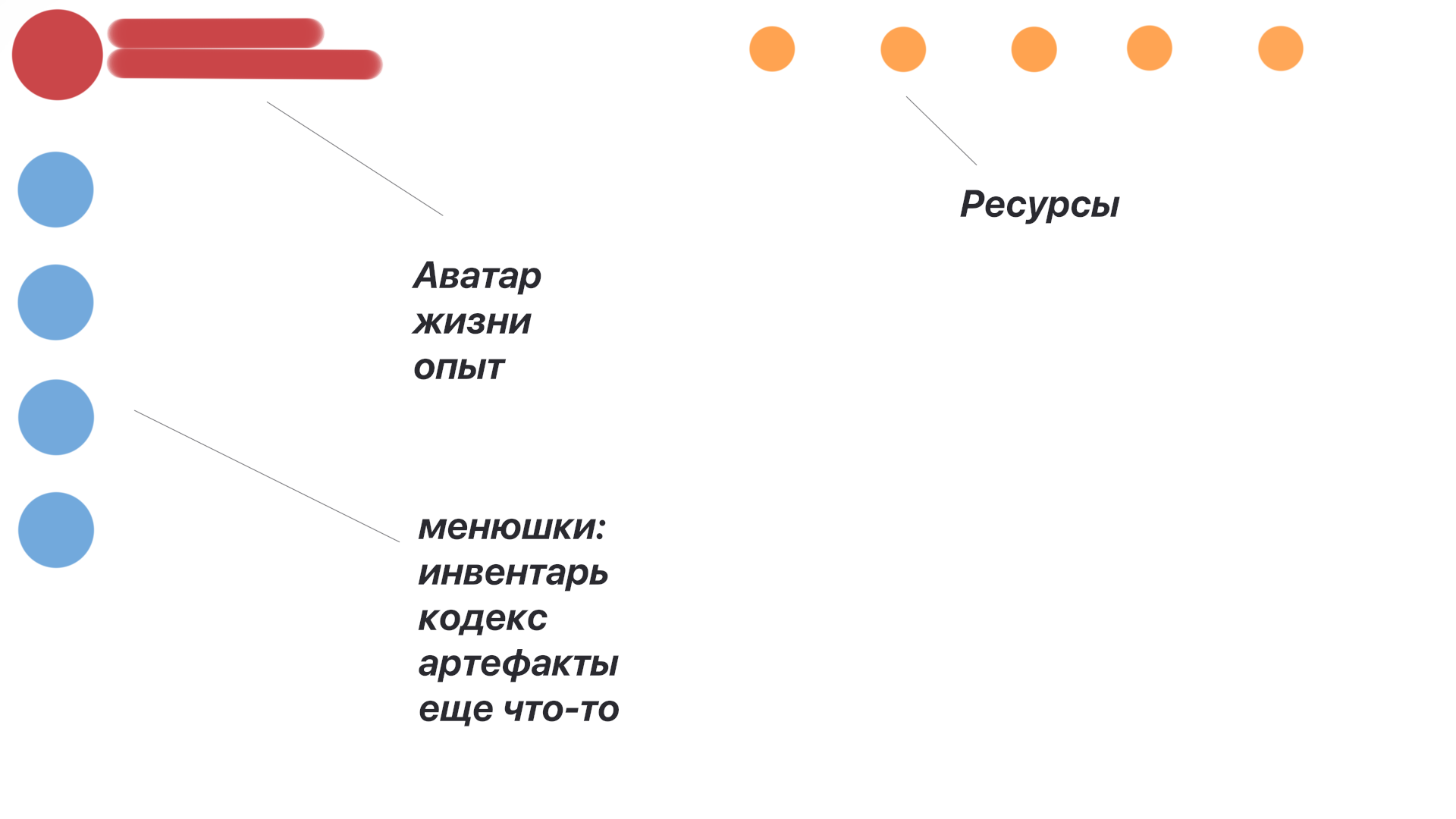 Акцент на главном герое. Поэтому вся информационная часть должна быть доступна, но не бросаться в глаза.