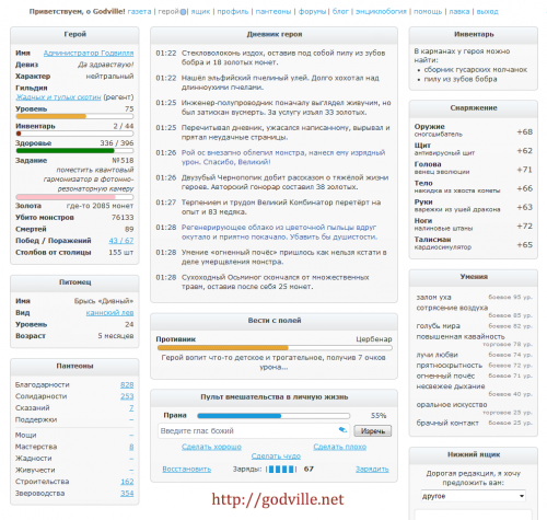 Эта текстовая ММО долгое время полностью следовала концепции ZPG - игрок управляет божеством, которое наблюдает за своим избранником - героем. Герой практически полностью самостоятелен в своих действиях - он путешествует, сражается и прокачивается, но кроме того ведет дневник - рассказывает своему божеству о своих деяниях, мыслях и переживаниях. Божество может лишь изредка поощрить или наказать (хотя со временем в игре появилась очень много активностей для игрока, как и методов монетизации). Игра хорошо подходит для нерегулярного геймплея - достаточно иногда проведывать своего героя и читать о его прогрессе и приключениях. Игра идет всегда в реальном времени - приключения героя происходят даже когда игрок отсутствует в игре.