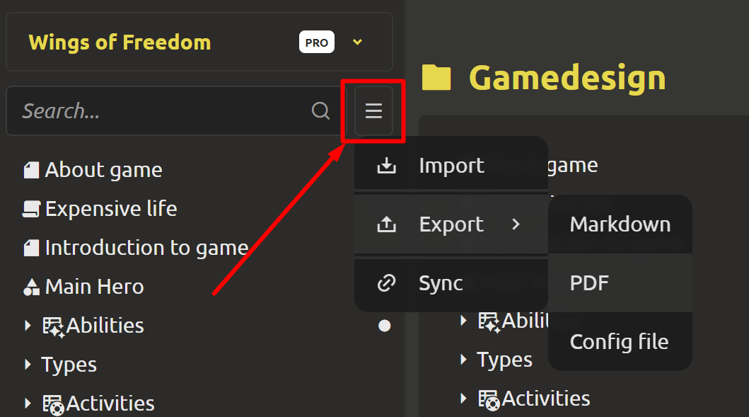 A button for quick access to Import, Export, and Project Sync operations has been added to the right of the search bar. Now your "treasure trove" of knowledge is completely safe and always at hand!
