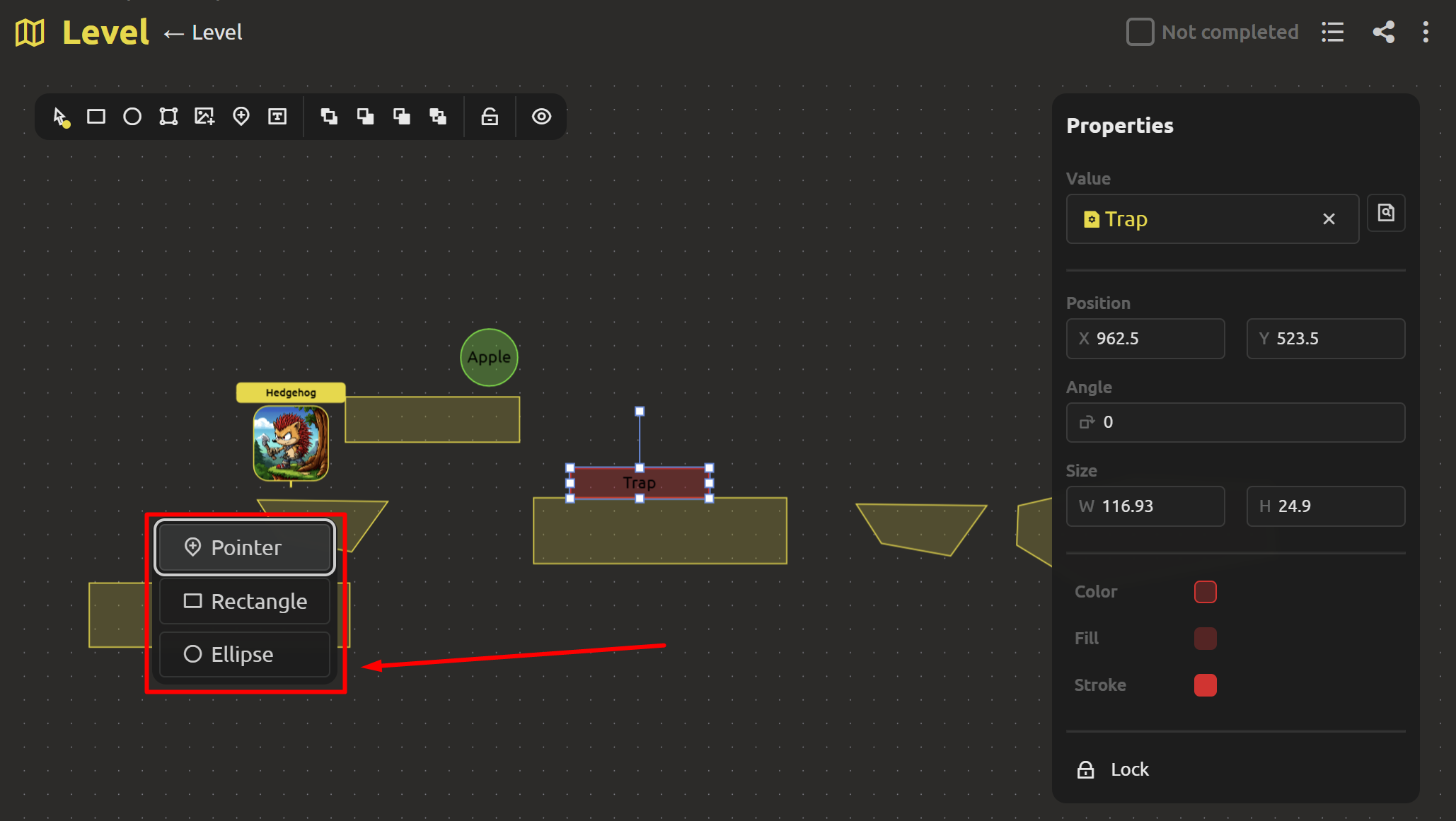 - Element Labels: Add text notes directly to the level map. For example, "Secret room behind a destructible wall."