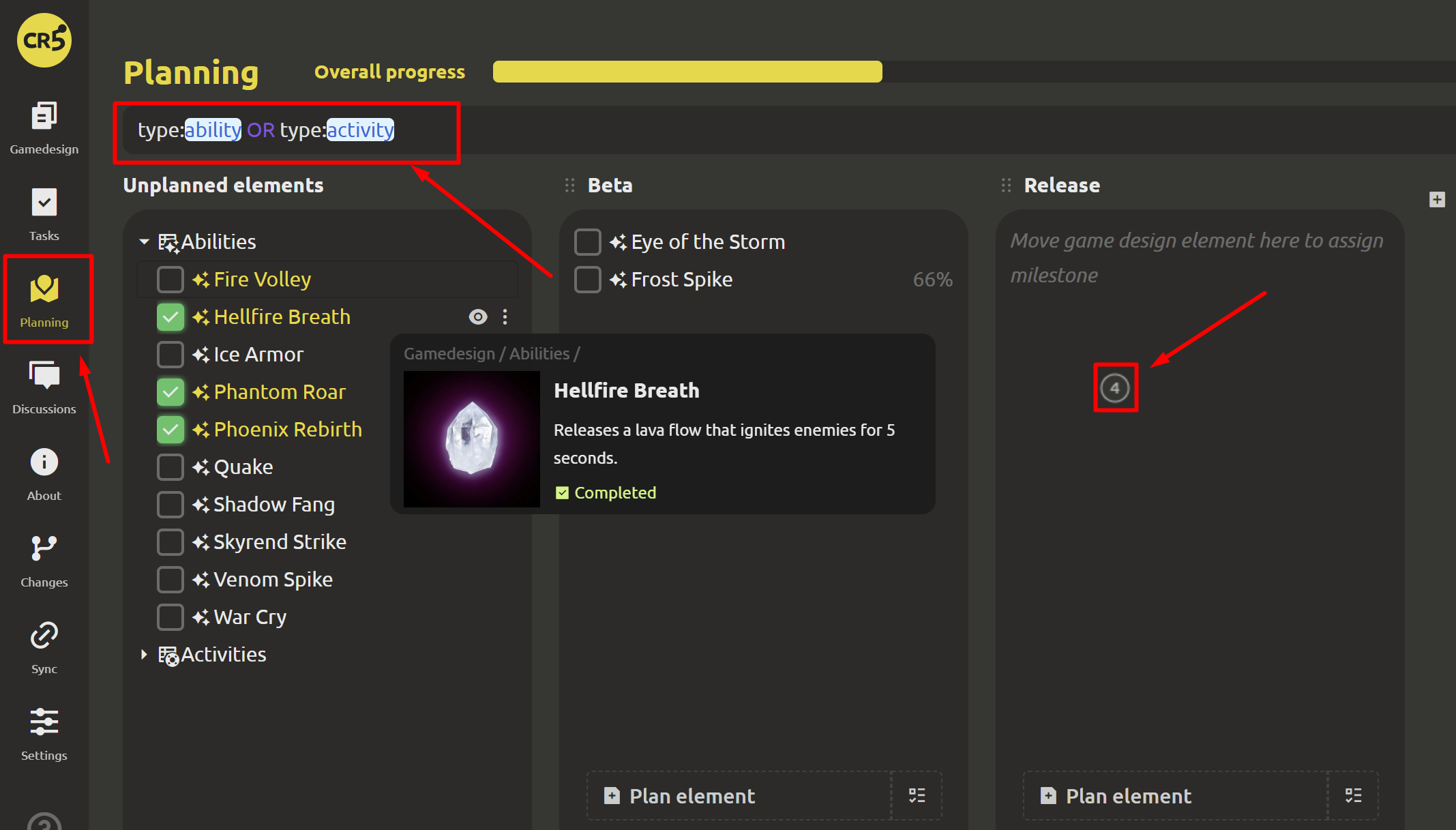 - Public planning: If your GDD is public, you can make the planning section public too. Share your roadmap with the community or investors directly from the app!