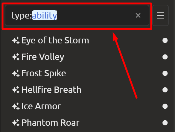 - Finding child elements (e.g. “find all abilities”):type:xxx