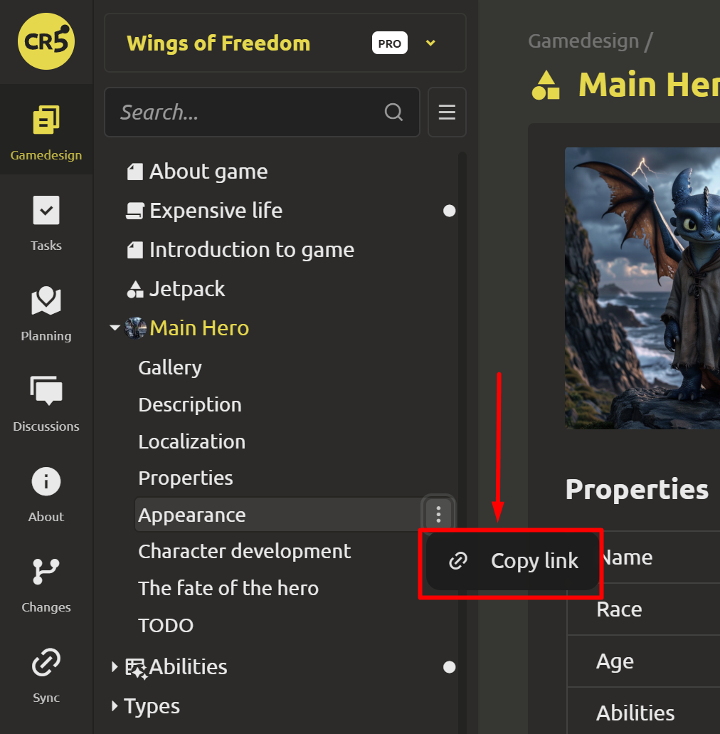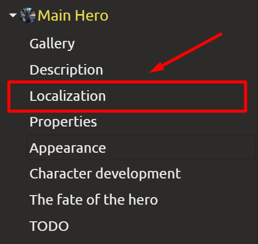 You can now preview an element's contents without opening it completely. By expanding the contents in the left menu, you can immediately jump to the desired section of a text document or dialog node. The localization block has been made more visually clear to allow for quick navigation from the menu.