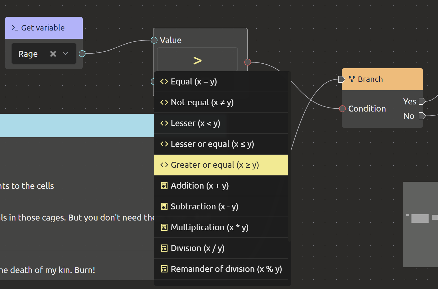 For convenience, we've also added the ability to quickly change the operator by clicking on an operator in the value comparison block.