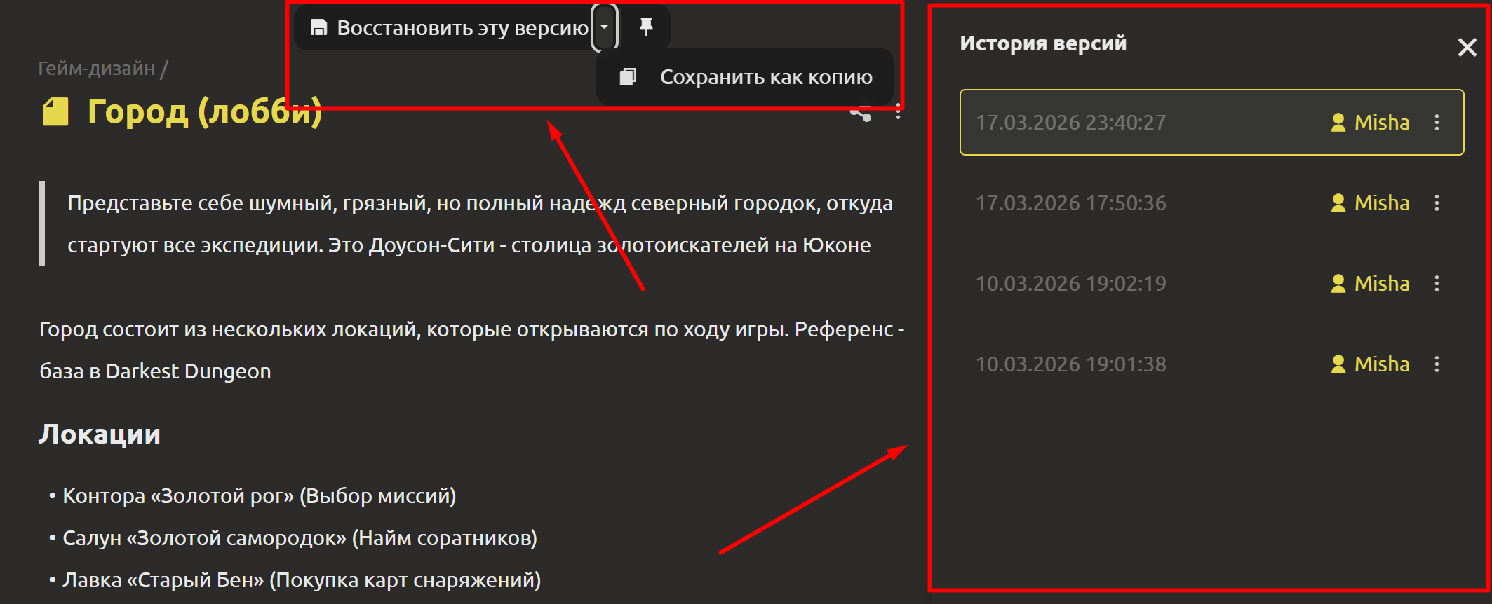 Обновления в режиме реального времени в геймдизайн документе и задачах