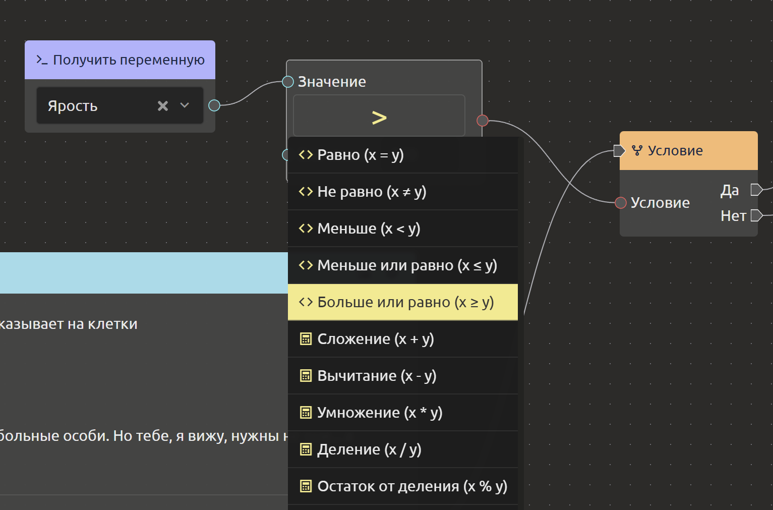 А ещё для удобства мы добавили возможность при клике на оператор в блоке сравнения переменных быструю смену оператора.
